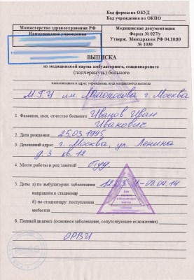 Документ выдается по месту учебы или работы. Если не знаете, как быстро, без комиссий и медосмотра оформить данный документ – поможем в решении задачи. Наши специалисты – истинные профессионалы. Выполняют работу оперативно и недорого с доставкой на дом. Буквально в течение одного дня медсправка 027/у будет у вас на руках.