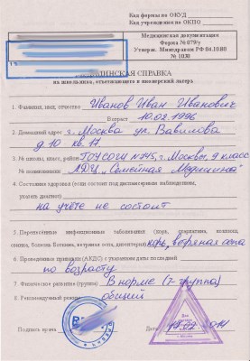 В такой справке нуждаются дети, которые будут отъезжать в оздоровительный детский лагерь.